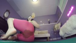 Enjoying wearing these pink yoga shorts and showing off a bit longer…LOVE how it feels having my shit caked around my pussy!!
