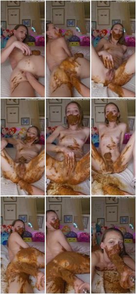 Mycelium Mother begins laying nude in her bed while her fuck machine gently rubs against her pussy while she pushes her shit pipe out…. she guides her toy into her pussy as her shit cascades down her asscheek. She shows off her coiled turd, breaks a piece off and tastes it as her pussy gently creams. She places the piece of poop into her mouth and spreads her cheeks as she turns the speed of her machine up fucking her as hard as it possibly can. She stops it and smears her dirty hand onto the cock and has it gently fuck her. She smears poop on her face. She turns the speed of her machine up and it pounds her pussy nicely. She flips over and pushes out two more nuggets of poop out onto the dick tip. She stuffs them into her pussy and smears her dirty hand on her body. Her machine fucks her dirty pussy. She places the remaining turd onto her mouth. She generates some piss for lubrication and begins again. She smear the shit on her face clogging her mouth and nostrils while she rubs her pussy…. her face grows red as she struggles. She spits her mouthful as she has a leg shaking clitoral orgasm. Smearing her poop her long white dildo coating it milk chocoately brown… she milks it as she savors the remaining poop in her mouth. She swallows. Laying supine, her machine gently fucks her…. pleasuring her clit and spreading her cheeks. She turns her machine up full speed one more time and smiles corruptly like a little brat entertaining herself and let’s out a little giggle before stopping. Laying prone, she let’s her machine fuck her dirty mouth. It gags her and steals her breath. She slurps the rest of her shit off the tip and swallows. She sits up and gives you a shit burp and a lick of shit spit like a lady.